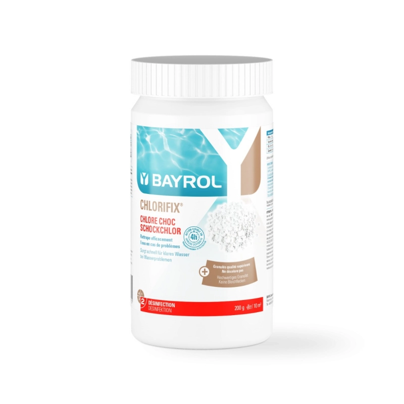 Chlorifix® ist ein schnelllösliches Chlorgranulat, das Wasserprobleme wie Trübungen oder Algenbefall effektiv beseitigt. Hochwertiges Rohmaterial erhöht den Aktivchlorgehalt schnell und zuverlässig. Die spezielle Granulatform sorgt für weniger Staub und erleichtert die Anwendung.