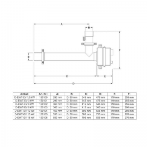 | 150100 | Daprà Elektroheizer D-EWT 1,5 kW | 1,5 kW | 230/400 V |