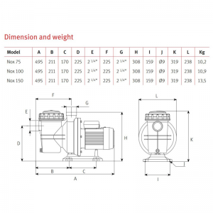 Die Espa Nox Filterpumpe 75 / 100 / 150 ist in drei Leistungsstufen erhältlich und bietet eine zuverlässige sowie kraftvolle Lösung für die Wasserzirkulation und -filtration in mittelgroßen Privatpools. Sie überzeugt durch einen besonders leisen Betrieb und eine selbstansaugende Funktion bis zu 4 Metern, wodurch ein reibungsloser und komfortabler Einsatz gewährleistet wird.