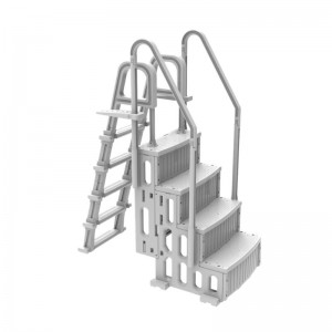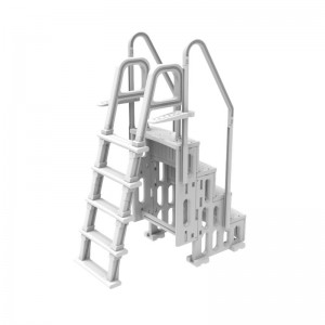Die OKU Pooltreppe 4-stufig aus Kunststoff mit 5-stufiger Leiter bietet einen sicheren und komfortablen Einstieg in Aufstellpools bis 145 cm Höhe und ist ideal für die ganze Familie.