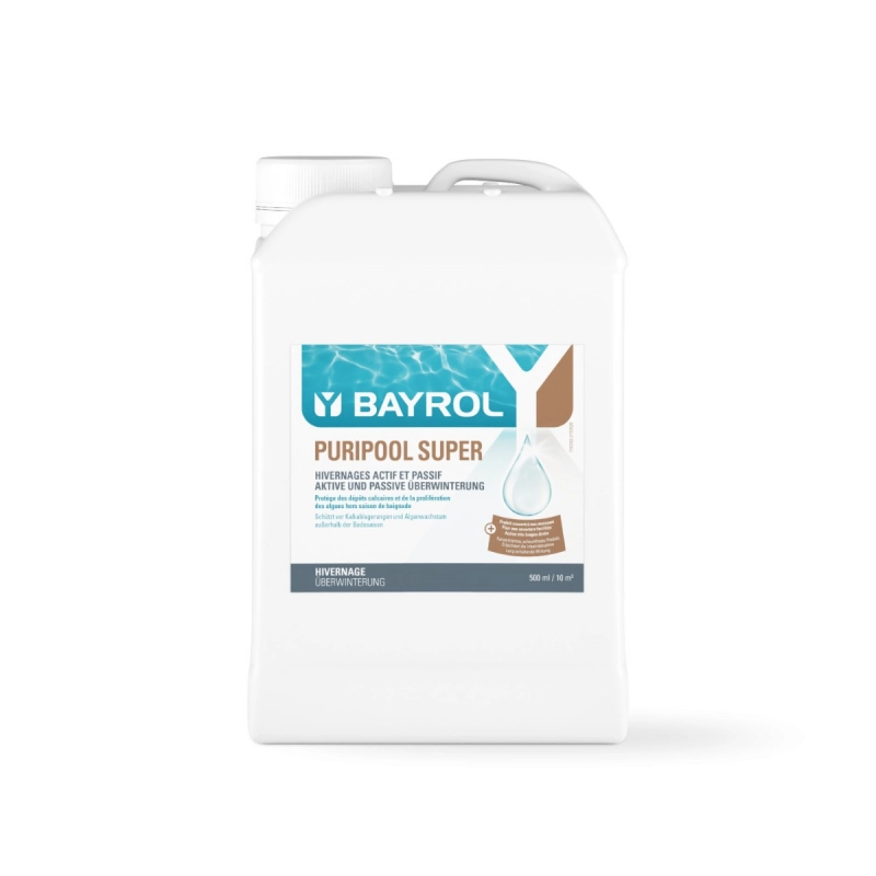BAYROL Puripool Super schützt Ihren Pool während der Winterpause vor Algenwachstum und Kalkablagerungen.