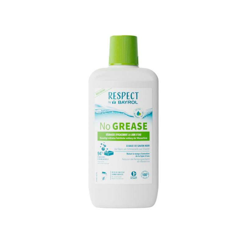 BAYROL No GREASE entfernt zuverlässig Fettablagerungen an Wasserlinie und Skimmer. Besonders effektiv bei Sonnencremeresten, Ölen und Verschmutzungen durch Badegäste.